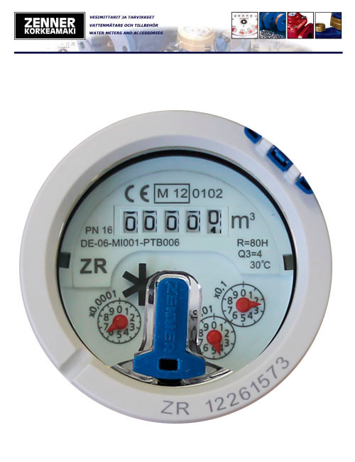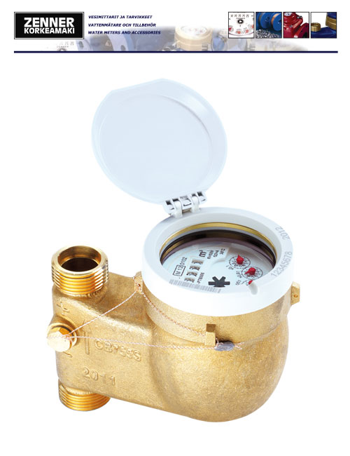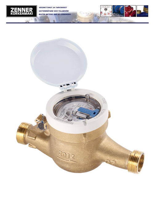 Multi-jet wet dial cold water meter.